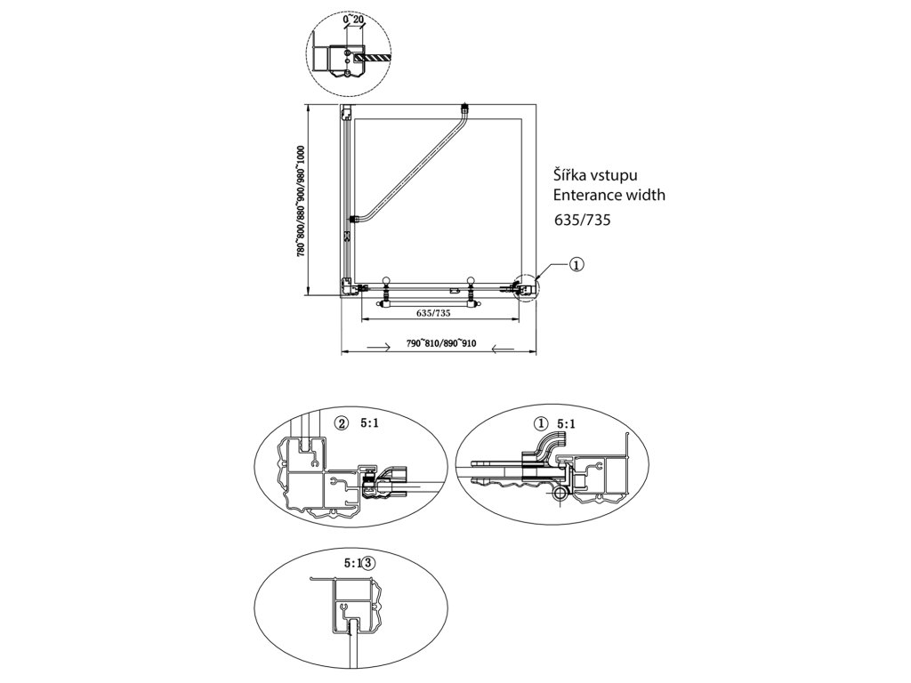 UPOZORNĚNÍ! Při montáži zástěny bez vaničky je nutná příprava vyspádované podlahy tak, aby zástěna byla usazena na rovinu mimo vyspádovanou plochu.