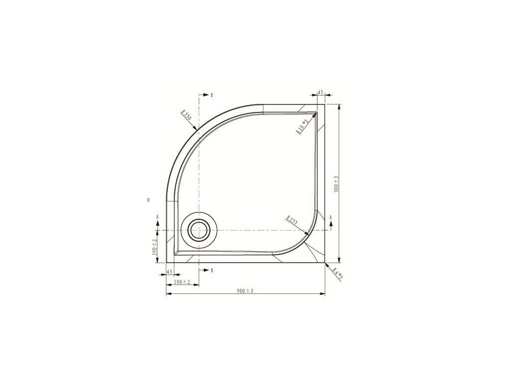 čtvrtkruhová zástěna rozměr 885 - 905 mm