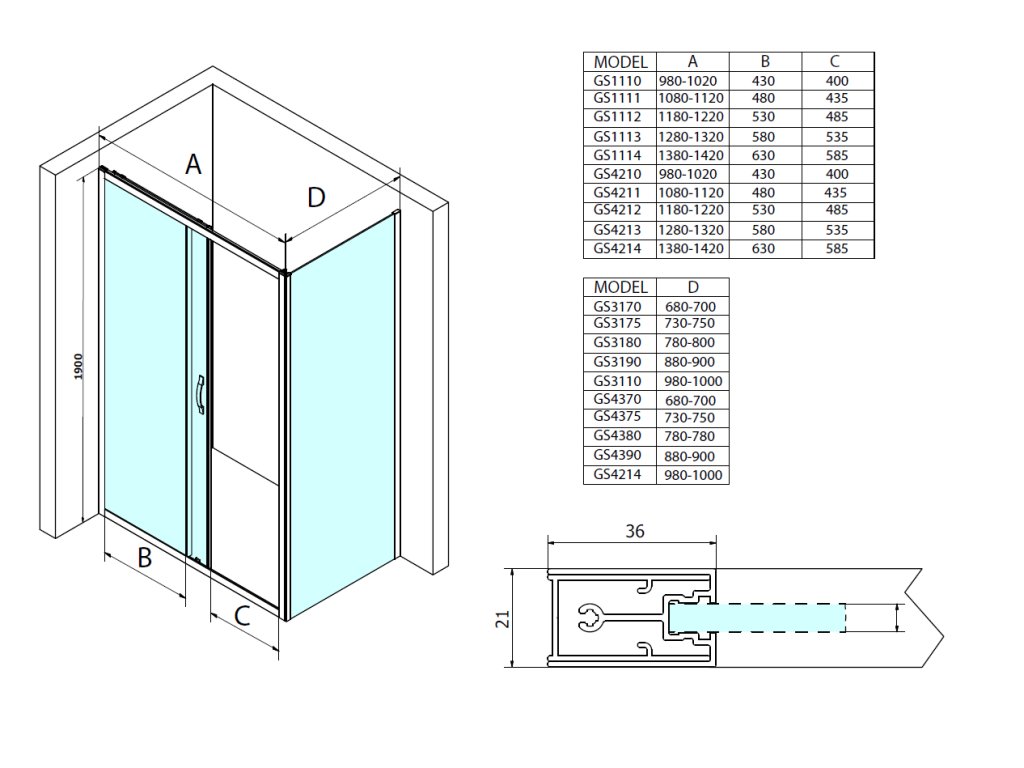 - Čtvercové a obdélníkové zástěny s rohovým vstupem vytvoříte spojením dvou posuvných dveří pro rohový vstup.