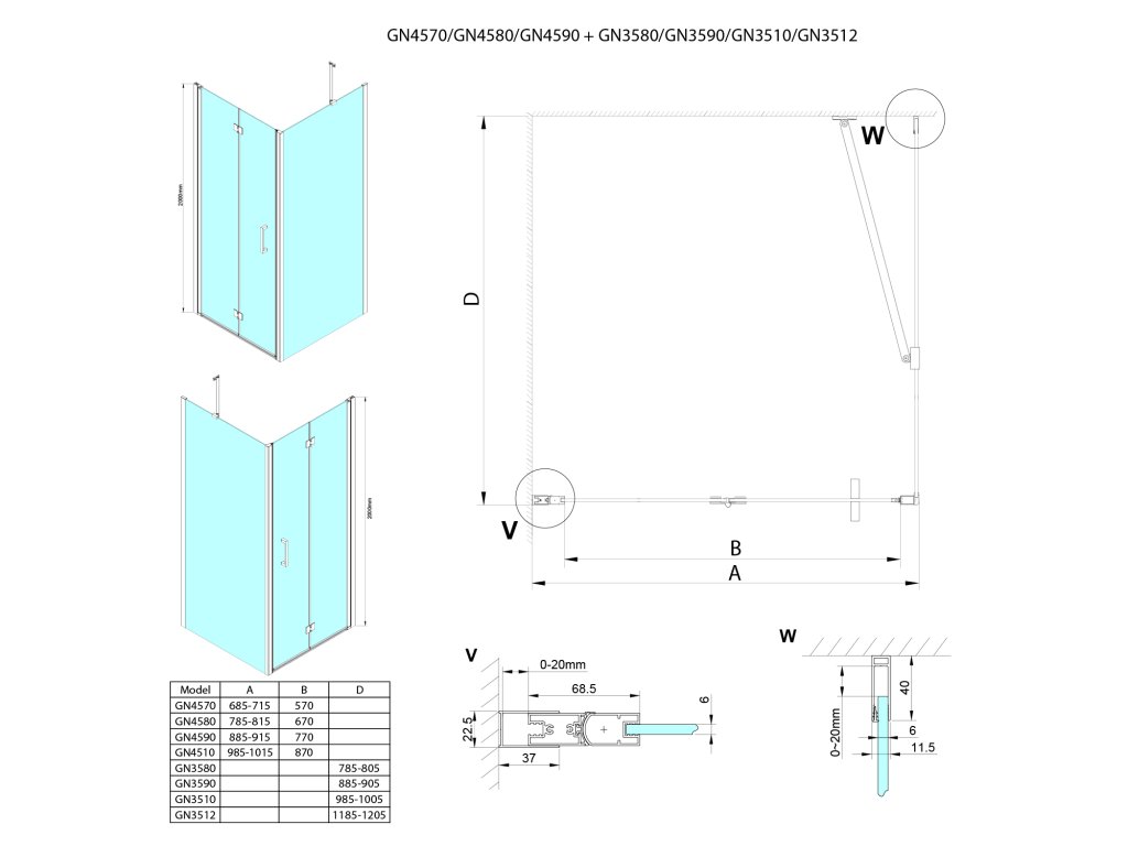- Dveře je možno instalovat do niky nebo v kombinaci s boční stěnou