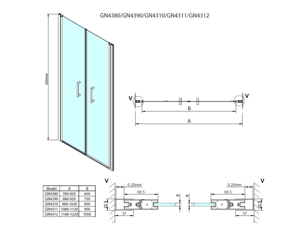 - Dveře je možno instalovat do niky nebo v kombinaci s boční stěnou