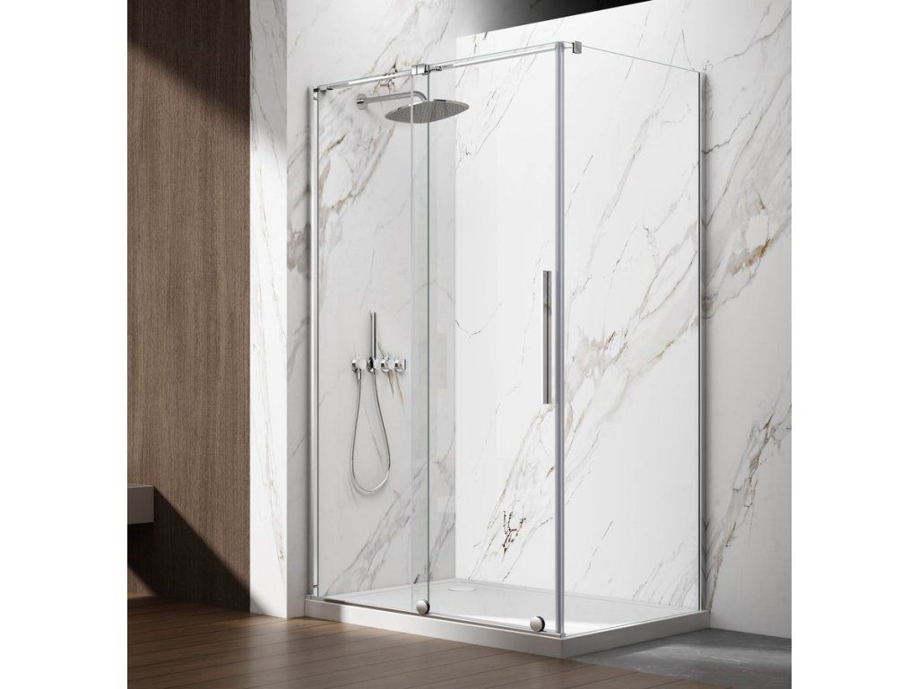 - Stylem walk-in lze dveře instalovat s kolmou vzpěrou 1200 mm, která je součástí balení nebo s rohovou vzpěrou (k dokoupení)