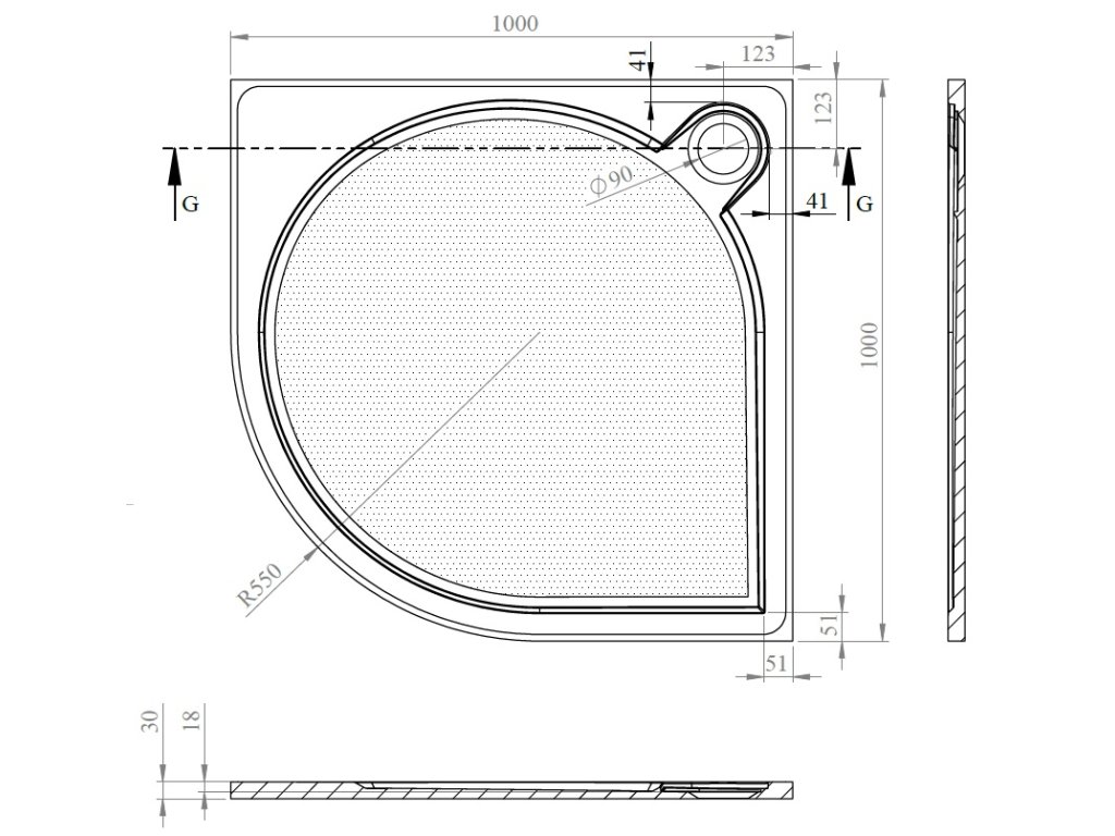 Sprchová vanička ARCA PA551 1000x1000 mm, profilovaná