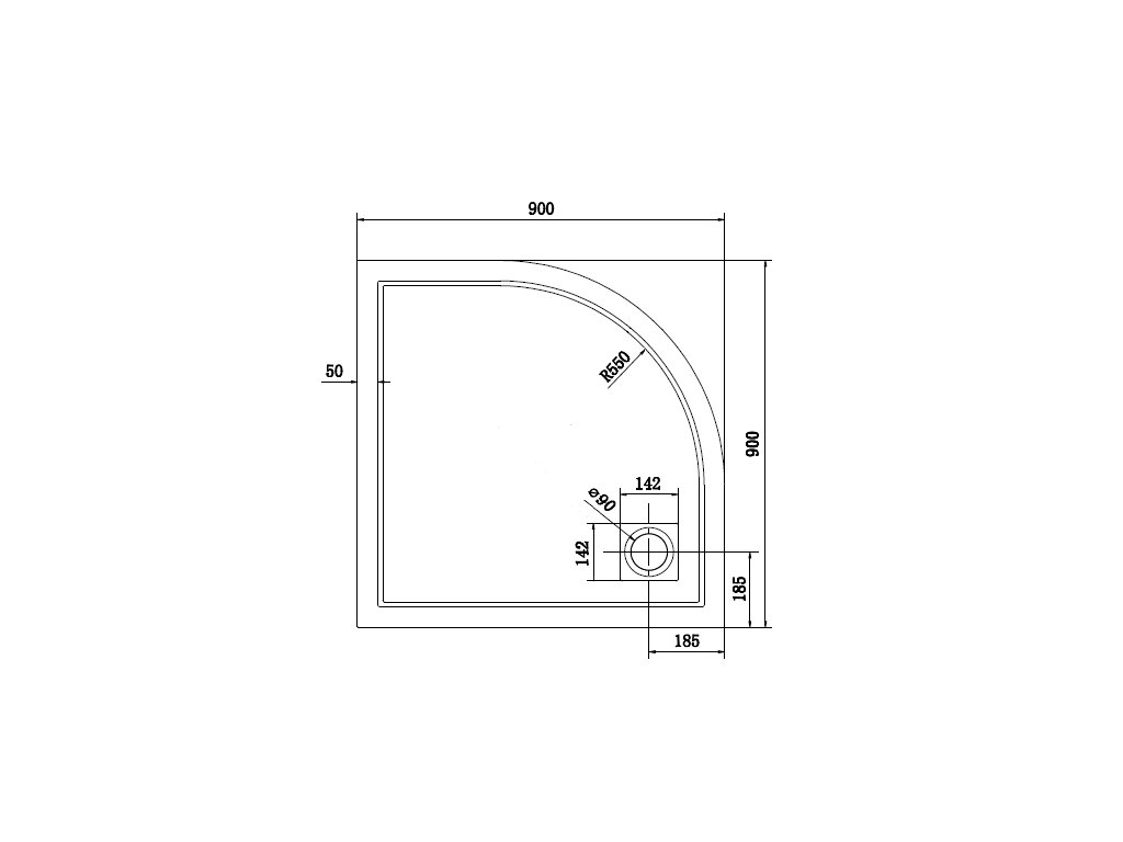 čtvrtkruhová zástěna rozměr 885 - 905 mm