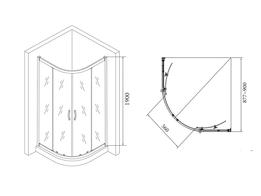 čtvrtkruhová zástěna rozměr 885 - 905 mm
