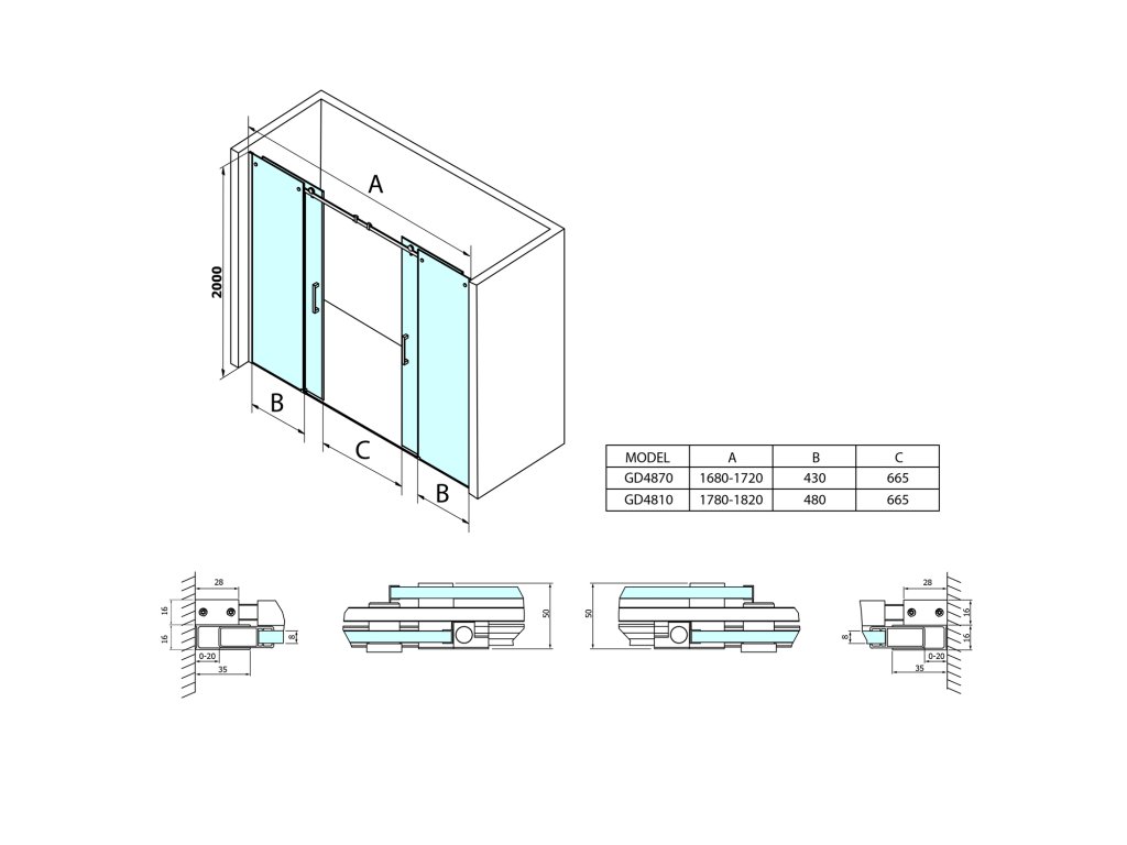 - Přístěnné profily jsou nastavitelné až o 15 mm a řeší tak nerovnosti stěn